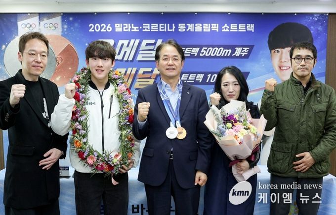 (케이엠뉴스) 고양특례시는 27일 오후 2시 시청 대회의실에서 ‘2026 밀라노-코르티나 동계올림픽’ 쇼트트랙 메달리스트인 고양시청 빙상팀 임종언 선수의 성과를 축하하는 환영 기자회견을 개최했다.