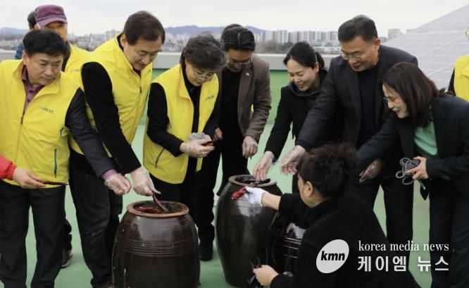(케이엠뉴스) 수원시 팔달구 화서1동은 지난 3월 3일, 화서1동 행정복지센터에서 주옥경 화서1동 새마을부녀회장의 재능 나눔으로 저소득 계층에 전달할 수제 된장 담그기 행사를 진행했다.