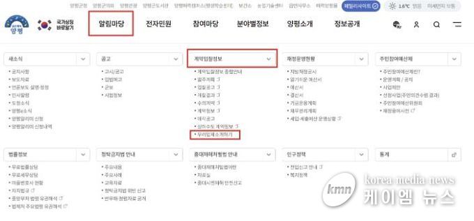 (케이엠뉴스) 양평군은 지역경제 활성화와 청년기업 및 신생(창업)기업의 공공시장 참여 확대를 위해 양평군청 누리집에 ‘우리업체 소개하기’ 게시판을 신설했다고 밝혔다.