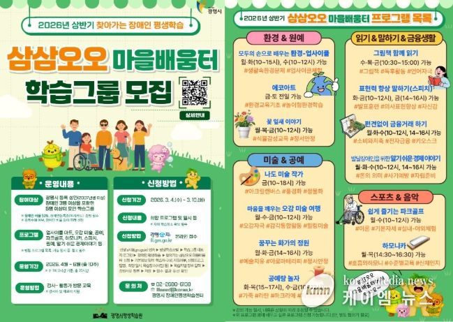 윤영희 평생학습원장은 “삼삼오오 마을배움터는 장애인의 실제 생활권 내 학습 수요를 반영한 수요자 중심의 프로그램”이라며 “앞으로도 장애인의 학습 접근성을 높여 누구나 배움에 참여할 수 있는 보편적 평생학습 환경을 지속적으로 확대하겠다”고 밝혔다.
