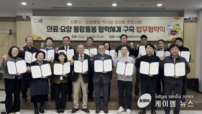 (케이엠뉴스) 시흥시는 지난 3월 5일 통합돌봄 사업의 안정적 추진과 지역 의료·돌봄 연계 강화를 위해 관내 요양병원 11곳 및 보건의료단체와 시청 글로벌센터에서 업무협약을 맺었다.