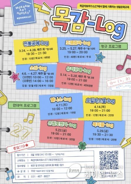 (케이엠뉴스) 시흥시는 목감아트하우스27에서 운영하는 상반기 생활문화교육 ‘목감-로그(log)’ 참여자를 모집한다.
