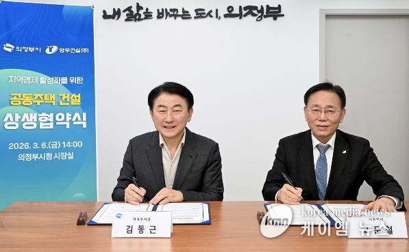 (케이엠뉴스) 의정부시는 3월 6일 ‘아파트 3무(無) 혁신 10대 프로젝트’의 실효성을 높이고자 양우건설(주)과 세 번째 상생협약을 체결하고, 지역 건설산업의 상생 기반 구축과 경제 활성화에 본격적인 시동을 걸었다. 특히 이날 협약식에는 양우건설(주) 고문철 대표가 직접 참석해 시와의 협력 의지를 표명했으며, 이를 통해 사업 추진에 대한 신뢰도를 한층 높이는 계기를 마련했다.