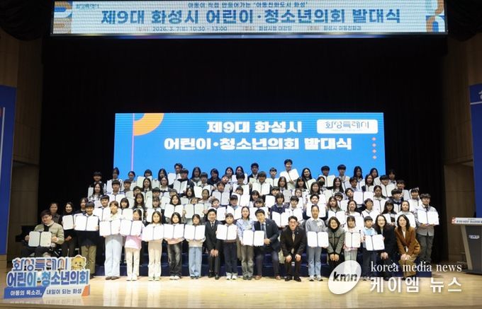 (케이엠뉴스) 화성특례시는 지난 7일 시청 대강당에서 제9대 어린이‧청소년의회 발대식을 개최했다.