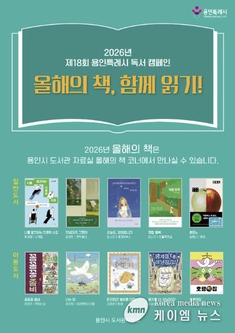 (케이엠뉴스) 용인특례시는 ‘나를 발견하는 인류학 수업’ 등 일반 도서 5권과 ‘꽁꽁꽁 좀비’ 등 아동도서 5권 등 총 10권을 ‘2026년 용인특례시 올해의 책’으로 선정했다고 9일 밝혔다.