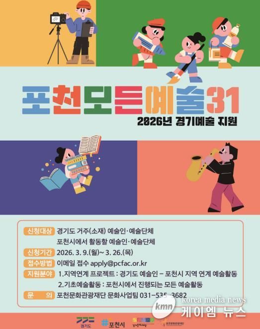 (케이엠뉴스) 포천문화관광재단은 포천시 문화예술 활성화와 장애인의 문화예술 참여 기회 확대를 위해 ‘포천 모든예술31’과 ‘장애인 문화예술 진흥사업’ 공모를 추진한다.