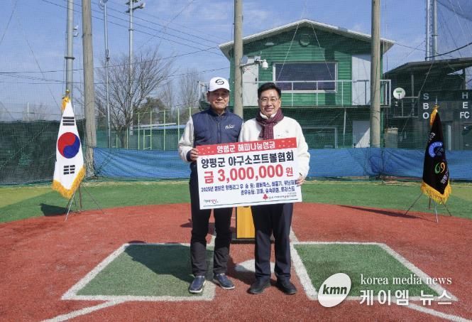 (케이엠뉴스) 양평군은 지난 8일 양평군 야구소프트볼협회가 제20회 양평군수배 물맑은양평 사회인 야구대회 개막식에서 취약계층 지원을 위한 해피나눔성금 300만 원을 기탁했다고 밝혔다.