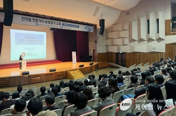 (케이엠뉴스) 안양시는 9일 오후 2시 소속 공무원들을 대상으로 예승연 헌법재판소 헌법재판연구원 교수를 초빙해 ‘헌법가치 바로 알기’ 교육을 실시했다.