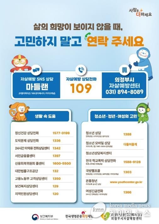 (케이엠뉴스) 의정부시 보건소는 봄철 자살률이 증가하는 자살 고위험 시기(3~5월)를 맞아 시민의 생명을 보호하고 정신 건강 인식을 높이기 위한 자살 예방 집중 홍보 활동을 실시한다.
