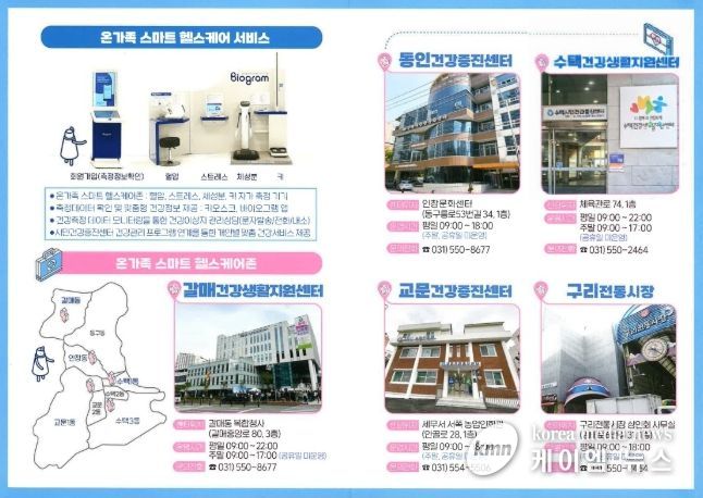 (케이엠뉴스) 구리시는 최첨단 정보통신기술(ICT)을 활용해 시민들이 생활권 가까운 곳에서 만성질환을 예방하고 자가 건강관리 능력을 높일 수 있도록 운영 중인 ‘온가족 스마트 헬스케어존’ 5개소에 대해 3월 한 달간 집중 홍보를 한다고 밝혔다.