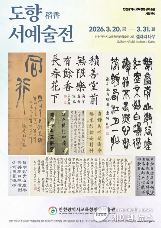 (케이엠뉴스) 인천광역시교육청평생학습관은 오는 3월 20일부터 31일까지 평생학습갤러리 '나무'와 '다솜'에서 ‘도향 서예술전’과 ‘매트릭스 너머’ 전시를 개최한다.
