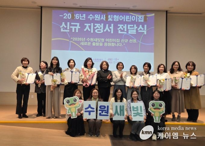 (케이엠뉴스) 수원특례시가 11일 수원시 농수산물도매시장 대회의실에서 신규 선정된 ‘수원새빛형어린이집’ 10개소에 지정서를 전달했다.