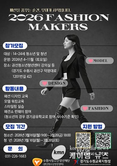 (케이엠뉴스) 수원시청소년청년재단 권선청소년청년센터는 패션 분야 진로에 관심 있는 청소년과 청년을 대상으로 ‘패션메이커스(Fashion Makers)’ 프로그램 참가자를 모집한다.
