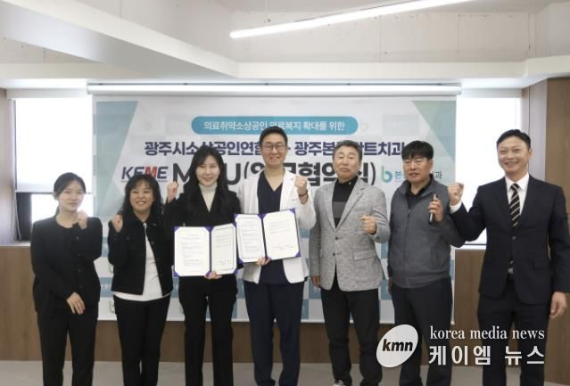 (케이엠뉴스) 광주시소상공인연합회와 광주시 양벌동에 위치한 광주본플란트치과의원은 지난 12일 지역 소상공인의 구강 건강 증진과 복지 향상을 위한 업무협약을 체결했다.