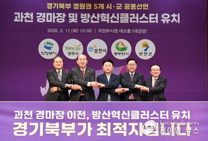 (케이엠뉴스) 양주시는 17일 의정부시청 대강당에서 의정부·포천·동두천시·연천군과 함께 ‘과천경마공원 이전 및 방산혁신클러스터 경기북부 유치’를 위한 공동 선언문을 발표했다.