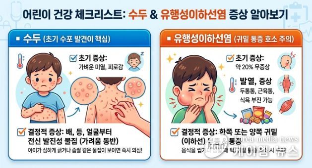 (케이엠뉴스) 화성특례시 동탄구보건소가 3월 신학기를 맞아 학생 간 접촉이 빈번해짐에 따라 수두 및 유행성이하선염(볼거리) 등 학령기 주요 감염병에 대한 각별한 주의와 철저한 예방 관리를 당부했다. 두 감염병은 매년 3월에서 5월 사이 발생이 급증하며 전염력이 강해 교내 집단 감염으로 이어질 수 있다.