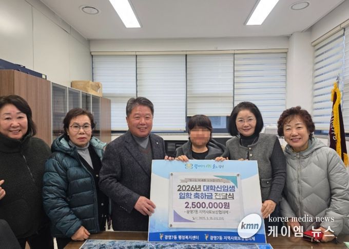(케이엠뉴스) 광명시 광명7동 지역사회보장협의체는 18일 새학기를 맞아 광명7동 행정복지센터에서 저소득 가정 대학 신입생을 위한 ‘대학 신입생 입학축하금 전달식’을 가졌다.