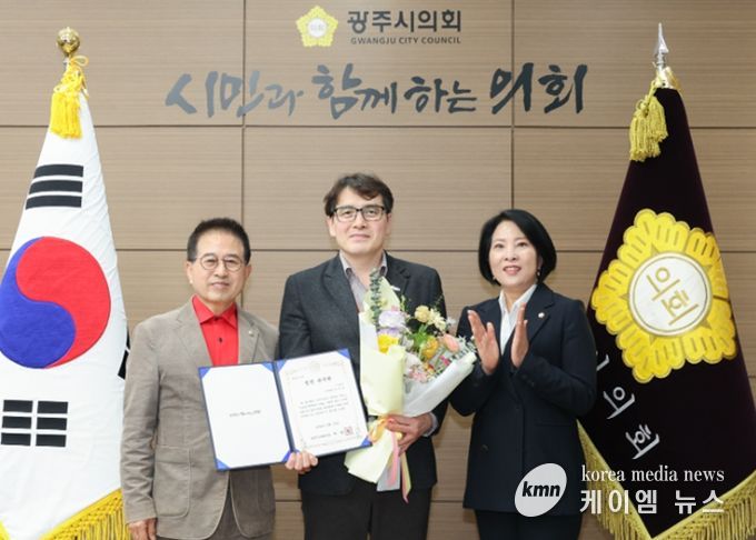 (케이엠뉴스) 광주시의회는 지난 18일, 광주시의회 3월 칭찬공무원으로 도시계획과 도시계획팀의 김진성 팀장을 선정하여 의장실에서 증서를 수여했다.