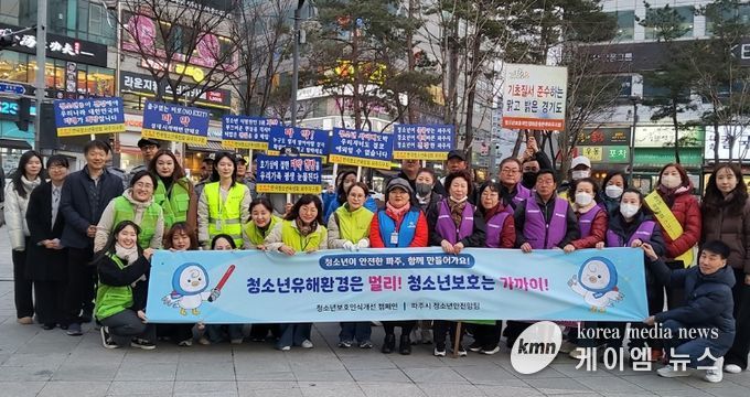 (케이엠뉴스) 파주시는 개학기를 맞아 지난 18일 금릉역 인근 학교 주변과 번화가에서 민관이 합동해 유해환경을 점검하고 청소년 보호 홍보 활동을 실시했다.