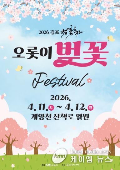 (케이엠뉴스) 김포시가 오는 4월 11일부터 12일까지 이틀간 김포 대표 벚꽃 명소인 계양천 산책로 일원에서 ‘2026 김포 벚꽃축제’를 개최한다.