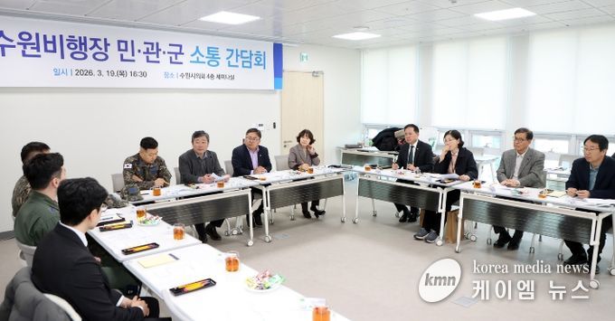 (케이엠뉴스) 수원특례시의회는 19일 의회 세미나실에서 공항 소음피해지역 주민들과 군, 시 관계자가 함께하는 ‘민·관·군 소통 간담회’를 개최하고 소음피해 해소를 위한 실질적인 대응 방안 마련에 나섰다.