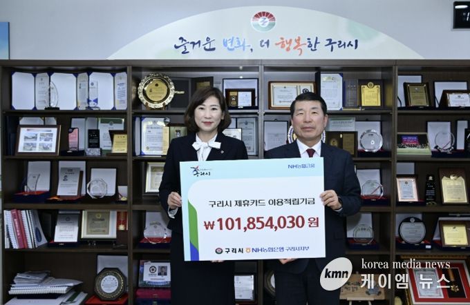 (케이엠뉴스) 구리시는 지난 3월 19일 시청에서 NH농협은행과 함께 ‘법인카드 이용적립금 전달식’을 개최했다고 밝혔다.