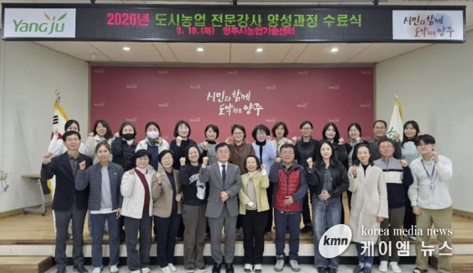 (케이엠뉴스) 양주시가 지난 19일 양주시농업기술센터 대회의실에서 ‘2026년 도시농업 전문강사 양성과정’ 수료식을 개최했다.