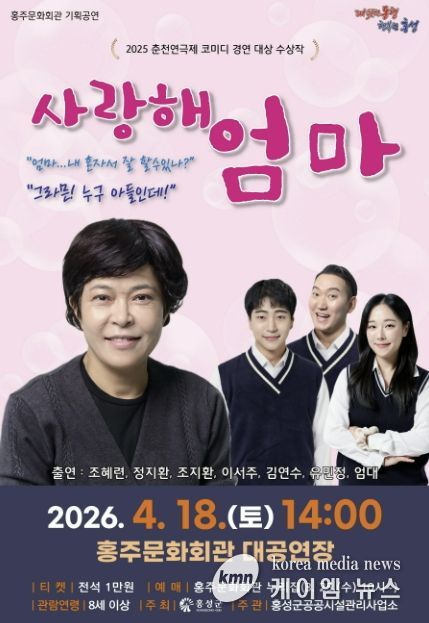 (케이엠뉴스) 홍성군은 가족의 소중함을 담은 휴먼스토리 ‘사랑해 엄마’를 4월 18일 오후 2시 홍주문화회관 대공연장 무대에 올린다.