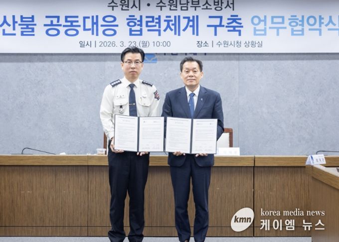 수원시와 수원남부소방서는 23일 시청 상황실에서 ‘산불 신속 대응을 위한 업무협약’을 체결하고, 협력을 약속했다.
