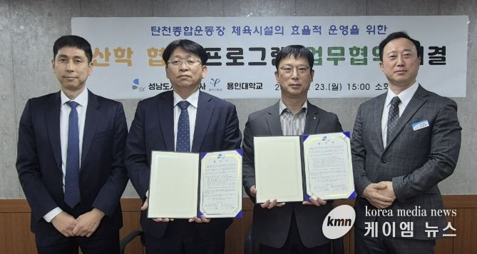 (케이엠뉴스) 성남도시개발공사 탄천종합운동장은 지난 23일 용인대학교 체육과학대학과 공공체육 활성화 및 전문인력 양성을 위한 업무협약(MOU)을 체결했다고 24일 밝혔다.