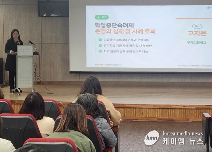 (케이엠뉴스) 인천광역시교육청은 24일 인천북부교육문화센터 소공연장에서 학업중단숙려제 현장지원단 교원 60명을 대상으로 역량강화 연수를 실시했다.