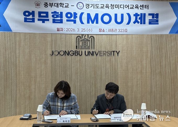 먼저 경기도교육청미디어교육센터와 중부대학교 지역혁신중심대학지원사업단은 ‘경기 RISE사업 연계 경기도 학부모 미디어교육 협력 기반 마련을 위한 업무협약’을 통해 미디어교육 전반에 대해 상호 협력하기로 했다.