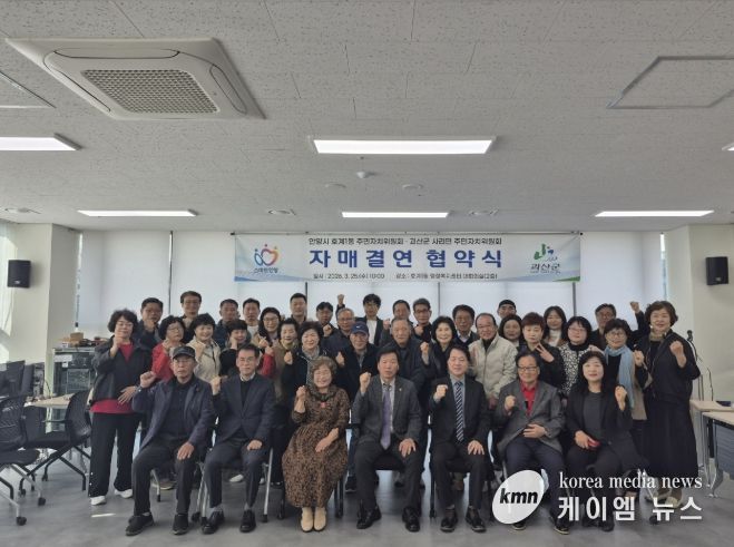 (케이엠뉴스) 안양시 동안구 호계1동 주민자치위원회는 지난 25일 호계1동 행정복지센터에서 충북 괴산군 사리면 주민자치위원회와 상생 발전 및 도농 교류 활성화를 위한 자매결연 협약을 체결했다.