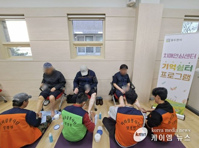 (케이엠뉴스) 동두천시치매안심센터는 지난 23일 경증 치매 환자들을 위한 ‘기억쉼터 프로그램’에서 성경원 미라클봉사단의 지원으로 발마사지 서비스를 제공받았다고 밝혔다.