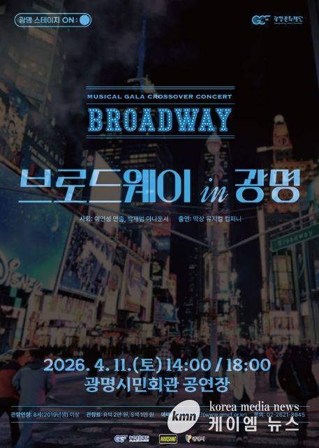 (케이엠뉴스) (재)광명문화재단은 오는 4월 11일 오후 2시와 6시, 광명시민회관에서 크로스오버 콘서트 '브로드웨이 IN 광명'을 개최한다.