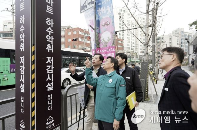신상진 성남시장도 점검에 나서 3월 26일 오전 신흥2동, 중앙동, 은행2동에 있는 스마트 하수 악취 저감시설을 차례로 찾아가 살펴봤다.