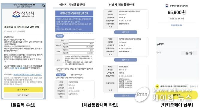 성남시 관계자는 “통합 징수 시스템을 통해 시민 중심 행정을 지속해 왔으며, 이번 알림톡 도입으로 편의성이 한층 강화됐다”며 “앞으로도 다양한 안내 채널과 간편 납부 수단을 지속 확대해 나가겠다”고 밝혔다.