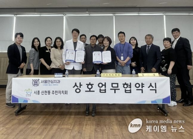 (케이엠뉴스) 시흥시 신천동 주민자치회는 지난 3월 25일 신천동 행정복지센터에서 서울안심치과와 신천동 주민의 건강 증진과 의료복지 향상을 위한 업무협약을 체결했다.