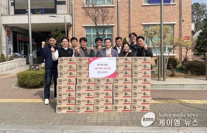 (케이엠뉴스) 시흥시 정왕본동은 지난 3월 26일, ‘봉우재 나눔회’로부터 라면 40상자를 기탁받는 후원품 전달식을 진행했다.