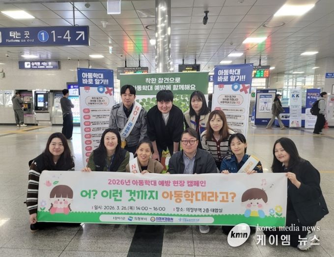 (케이엠뉴스) 의정부시는 3월 26일 의정부역에서 의정부경찰서, 의정부시아동보호전문기관과 함께 아동학대 예방 및 인식 개선을 위한 현장 캠페인을 실시했다.