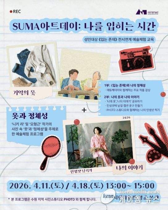 (케이엠뉴스) 경기도 수원시립미술관은 성인 대상 예술 체험 프로그램 'SUMA 아트데이: 나를 입히는 시간'을 4월 11일부터 운영하며 참여자를 모집한다.