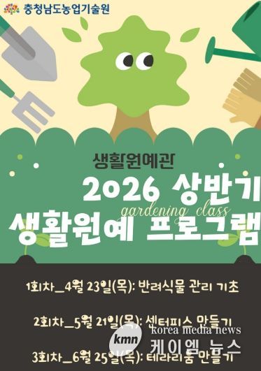 (케이엠뉴스) 충남도 농업기술원은 도민의 생활 속 식물문화 확산을 위해 ‘2026년 상반기 생활원예 프로그램’ 일반인 과정 참여자를 모집한다고 2일 밝혔다.