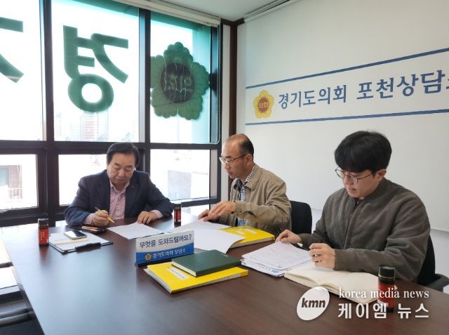 (케이엠뉴스) 경기도의회 농정해양위원회 소속 김성남 의원(국민의힘, 포천2) 4월2일 경기도의회 포천상담소에서 경기도 축산동물복지국 관계자들과 아프리카돼지열병 발생에 따른 피해 농가 지원 방안을 논의하는 정담회를 가졌다.