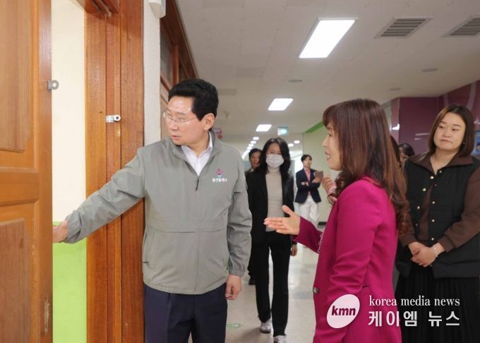 학부모들의 요청에 따라 진행된 이날 교통 봉사에서 이 시장은 교통지도에 앞서 학교 도서관 조성 현장을 방문해 교육환경 개선사업 추진 현황을 확인하고, 학교 관계자들과 함께 통학로와 학교 시설 전반을 점검했다.