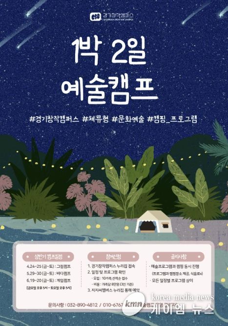 (케이엠뉴스) (재)경기문화재단 지역문화본부 경기창작캠퍼스는 4월부터 6월까지 2026년 상반기 《예술캠프》를 운영한다. 지난해 선감도의 갯벌과 갈대밭이 어우러진 풍경 속에서 가족들이 함께 머무는 시간을 따뜻하게 품었던 예술캠프는, 올해도 자연과 예술을 매개로 서로의 감각을 나누고, 일상에서 잠시 벗어난 자리에서 새로운 기억을 쌓을 수 있도록 기획했다.