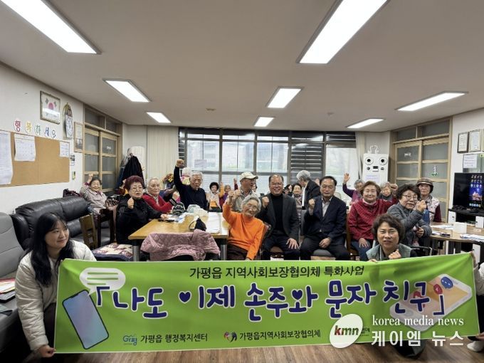 (케이엠뉴스) 가평군 가평읍 지역사회보장협의체는 지난 8일부터 관내 4개 경로당 어르신을 대상으로 디지털 역량 강화 프로그램인 ‘나도 손주와 문자친구’ 사업을 시작했다.