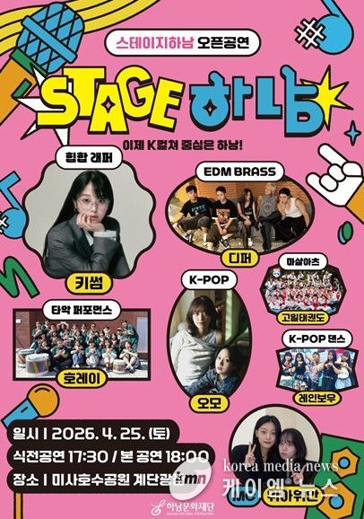 (케이엠뉴스) 하남시와 하남문화재단이 추진하는 대표 문화공연 ‘2026 스테이지 하남!’이 오는 4월 25일 미사호수공원 계단광장에서 오픈공연을 열고 올해 운영의 본격적인 시작을 알린다.