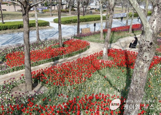 지난해 가을에 식재한 9만본의 튤립, 수선화를 포함해 총 13만6,000본의 형형색색 봄꽃이 만개했다.
