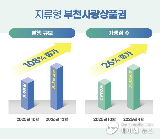 (케이엠뉴스) 부천시가 지역경제 선순환을 위해 도입한 지류형 지역화폐 ‘부천사랑상품권’이 시행 반년 만에 발행 규모와 사용처가 모두 꾸준히 늘며 지역 상권에 활기를 더하고 있다.
