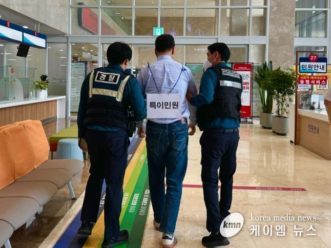 (케이엠뉴스) 예산군은 지난 15일 군청 민원실에서 민원인의 폭언·폭행 등으로부터 민원 담당 공무원을 보호하고 방문 민원인의 2차 피해에 신속히 대응하기 위해 특이민원 발생 대비 모의훈련을 실시했다.